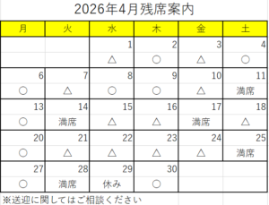 2026年3月23日現在の【4月の空席】をご案内いたします(^^)/